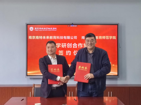 为推动校企深度合作,促进产学研一体化建设,2024年4月10日,南京特殊教育师范学院与南京南特未来教育科技有限公司在康复科学学院会议室举行校企合作签约仪式。党委常委、副校长吴彬江、党委常委、党委宣传部部长、对外合作与交流处处长朱正东及康复与科学学院党政领导共同出席了签约仪式。