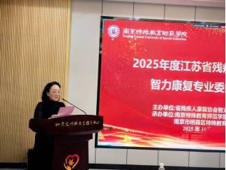 金秋送爽,共促发展。为推进智力康复事业进步,持续优化康复教育实践技术,推广先进经验,2025年10月17日,由江苏省残疾人康复协会智力康复专业委员会主办,南京特殊教育师范学院康复科学学院与南京市栖霞区特殊教育学校承办的“2025年度江苏省残疾人康复协会智力康复专业委员会年会”在南京市栖霞区特殊教育学校(化纤校区)顺利召开。会议由智力康复专业委员会主任委员王姣艳主持,江苏省残疾人康复协会相关领导及专委会成员共同参与。