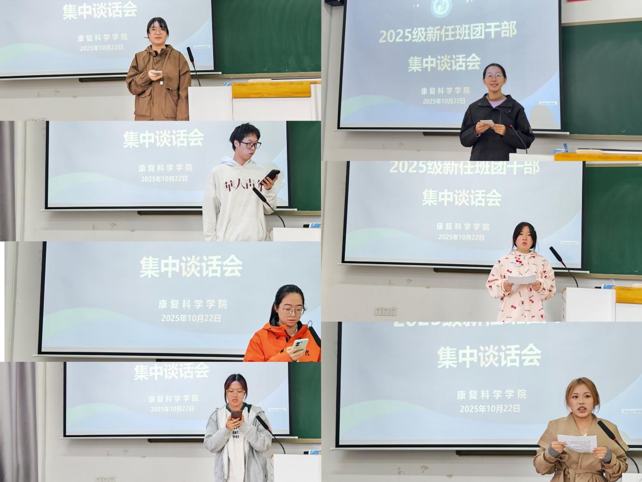 此次集中谈话会不仅为康复科学学院2025级新任班团干部搭建了良好的交流平台,更是明确了未来的工作标准与努力方向。参会班团干部纷纷表示,将以此次会议为起点,把“五个注重”要求融入班级日常管理,切实履职尽责,为营造优良班风学风贡献自己的力量。(文/张庭语、顾易菲、余琛 图/赵陆雨桐、曹怡帆 审核/叶亮)