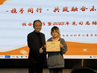 总结会上,见习生代表班霞、唐金泽、陶莹、陆诗怡等分享感悟,话语间满是对特殊儿童的共情与对行业的敬畏,真切体会到“用爱与专业护航成长”的重量。随后,七彩梦为见习表现突出者颁发“仁爱之心奖”“最佳实践奖”“七彩未来奖”。徐冬晨副院长为获奖学生点赞,寄语他们以见习为镜,找准知识与能力短板,在后续学习中精准提升;同时致谢七彩梦,从定制详细的见习计划到安排专人带教,从企业文化浸润到评奖总结,每处细节都彰显对人才培养的用心,为学生搭建起了从校园到职场的桥梁。七彩梦张冬院长也肯定学生的表现与成长,表达深化合作的期待。
