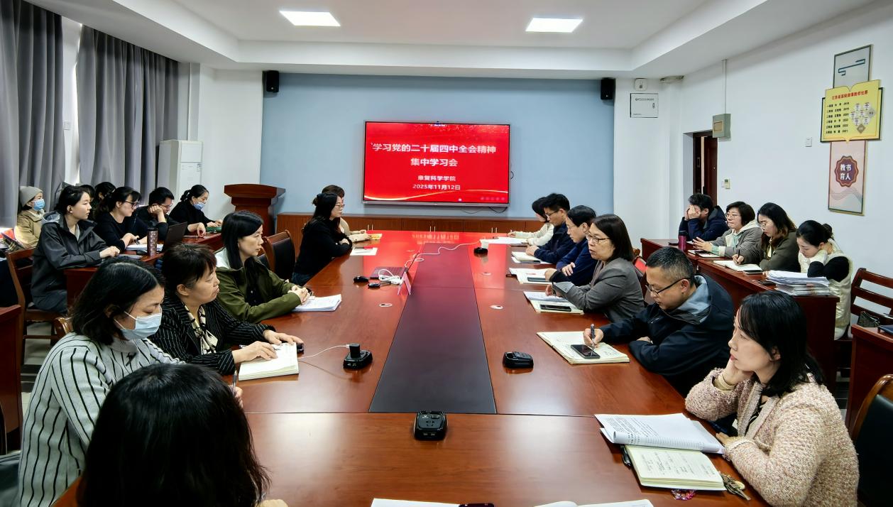 11月12日下午,学院组织召开全体教职工大会,集中学习二十届四中全会精神。会议观看了《中国共产党第二十届中央委员会第四次全体会议公报》新闻视频,将全会的重要决策和战略部署直观、生动地呈现在大家面前,使与会教师对全会的精神实质和核心要义有了更加清晰、深刻的第一印象。会议要求,各教研室、党支部要组织更深入的学习讨论,确保全会精神入脑入心,并融入到课程教学、科学研究、社会服务等各项工作中,激发干事创业的精气神。