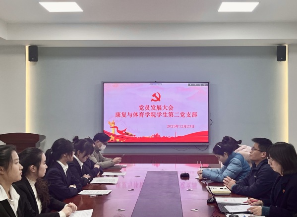 12月23日,康复与体育学院学生第二党支部召开党员发展大会。参加会议的有支部全体党员、发展对象及入党介绍人老师,会议由支部书记王雪梅主持。