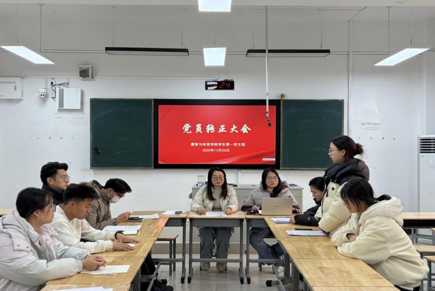 12月26日,康复与体育学院学生第一党支部召开预备党员答辩暨转正大会,专题研究李婉嘉等3位预备党员的转正事宜。支部全体党员、3位预备党员及入党介绍人参加会议,会议由学生第一党支部书记孔迪主持。