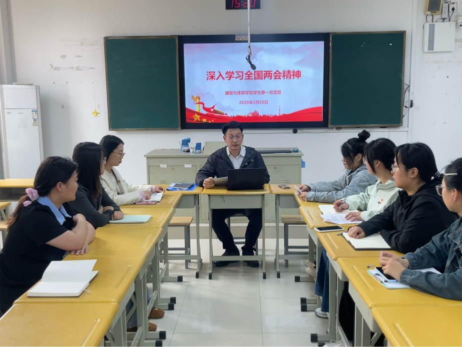 为深入学习贯彻2026年全国两会精神,引导学生党员将思想与行动统一到国家发展大局,3月29日下午,康复与体育学院学生第一党支部召开“深入学习全国两会精神 谱写‘十五五’发展新篇章”主题党日活动。活动由支部书记田天乐主持,支部全体成员参加。