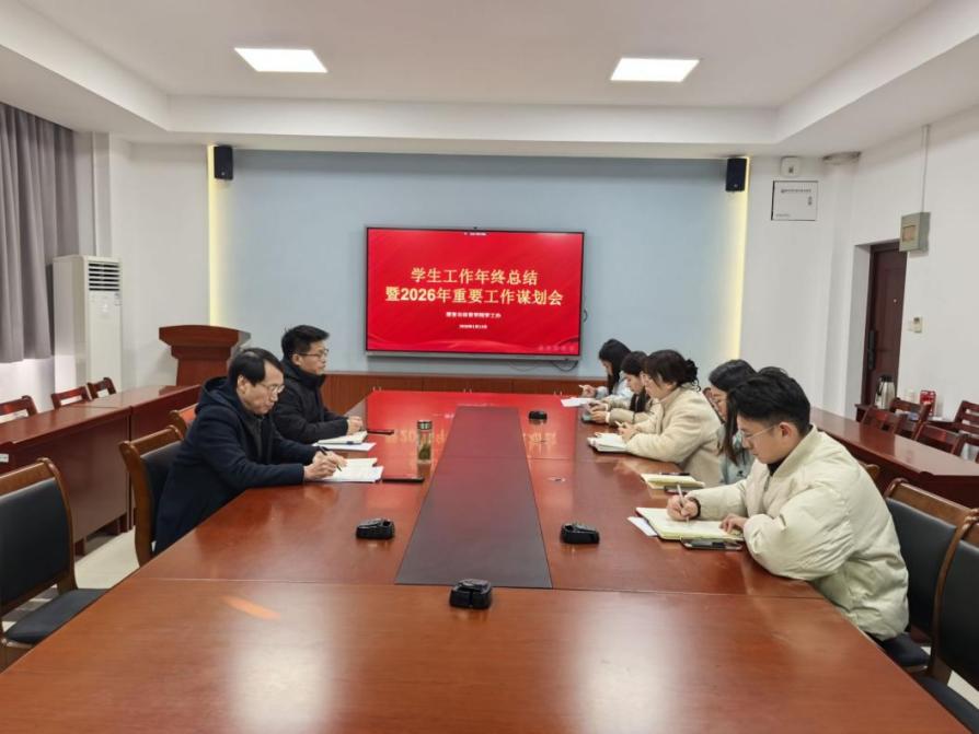 1月13日下午,康复与体育学院召开2025年学生工作年终总结会暨2026年重要工作谋划会。学院党总支书记叶亮出席,全体辅导员老师参会,会议由学院学生工作负责人、党总支副书记吴冠磊主持。