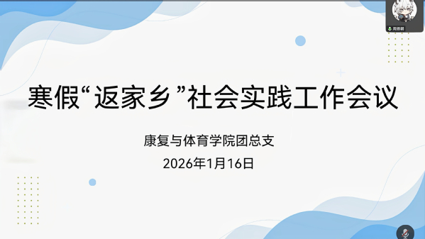为引导广大青年学生在服务家乡、服务人民的实践中“受教育、长才干、作贡献”,1月16日,康复与体育学院召开了2026年寒假“返家乡”社会实践工作动员会。会议由学院学工办主任(团总支书记)王雪梅老师主持,各班级学生代表参加。